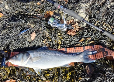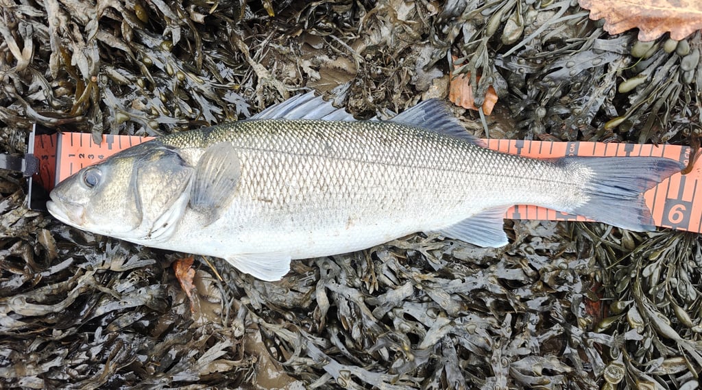 On the 16-10-24, I landed a new personal best bass of 60 cm while fishing with a chrome surface iron metal lure on low tide. The fish gave me a fantastic scrap on the Art Magic, and it was brilliant to bring the fish under control. Very happy, guy!!!